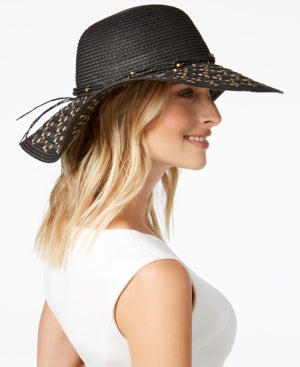 Description: INC International Concepts Beaded Floppy Adjustable Sun Hat (Black, One Size)